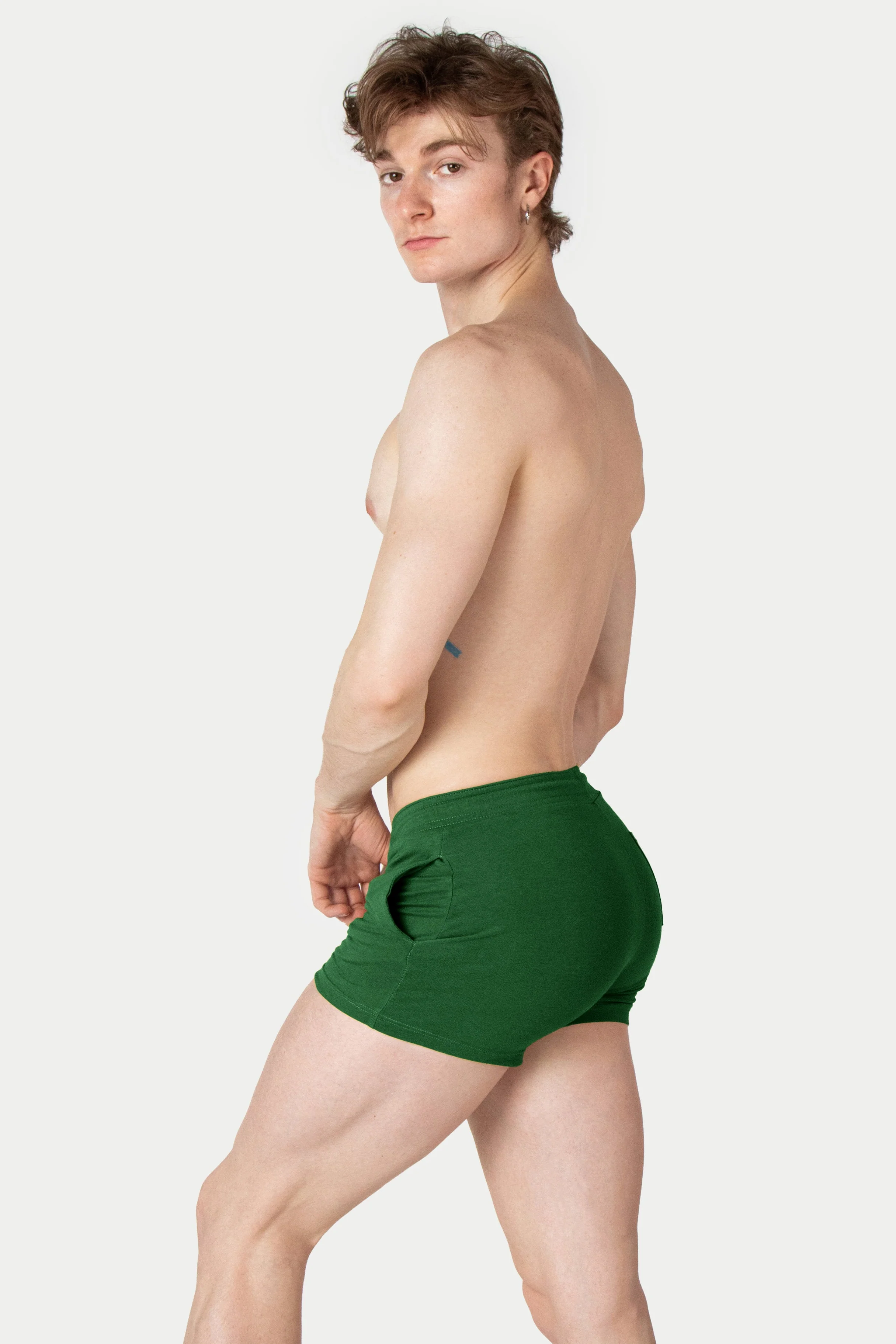 Of course, these shorts have to be ridiculously comfortable. They are made from a soft and stretchy bamboo fabric blend that really feels like a second skin. A high inseam, short legs, and fitted cut make it easy to showoff your thighs, butt, and bulge in this sexy pair. They are even equipped with large pockets, because fun shorts should be functional too!